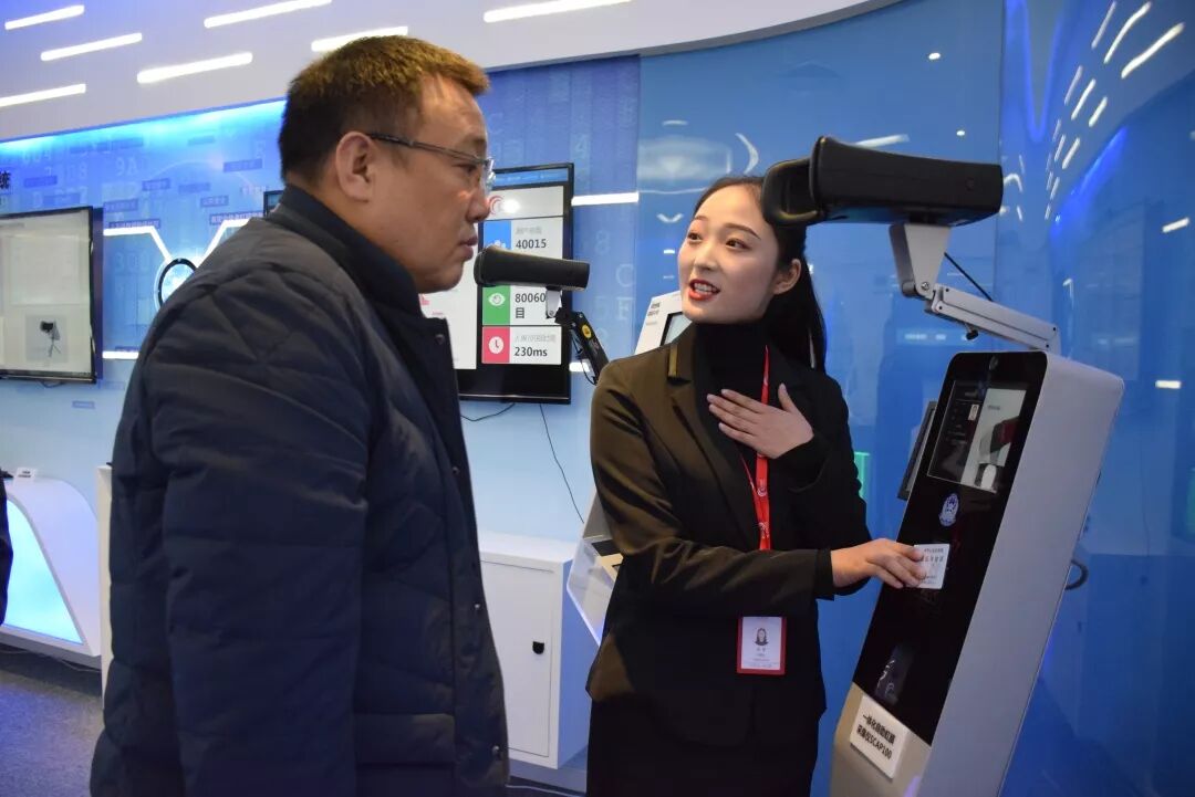 在了解和体验产品的过程中,领导对虹识虹膜识别技术及产品的安全便捷、精准快速表达了高度的肯定和赞赏。
