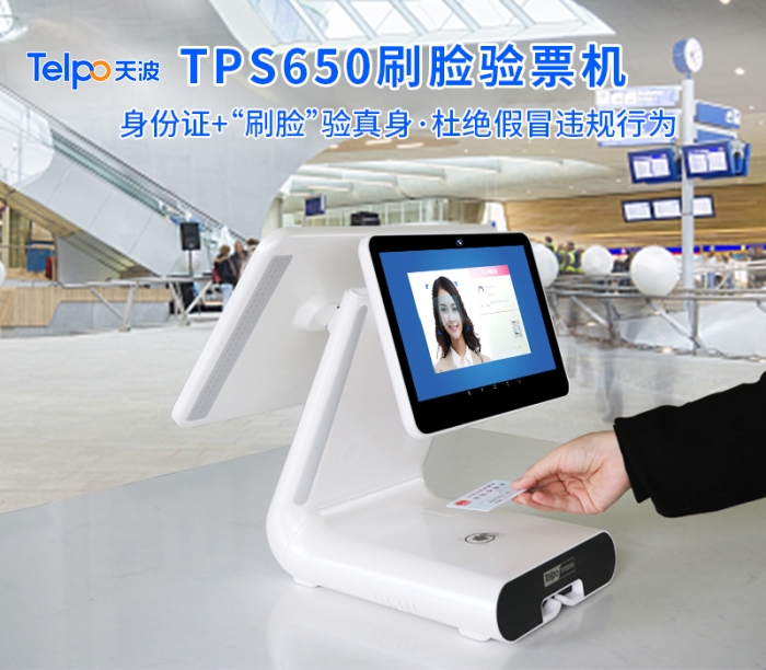 天波人证比对验票终端 TPS650,可以支持人脸识别和身份证识别(内置公安部认证的SAM模块),实现快速准确的人证对比和身份核验。同时配置热敏高速打印机,可选配NFC识别模块,实现门票打印或NFC、二维码电子门票的识别。
